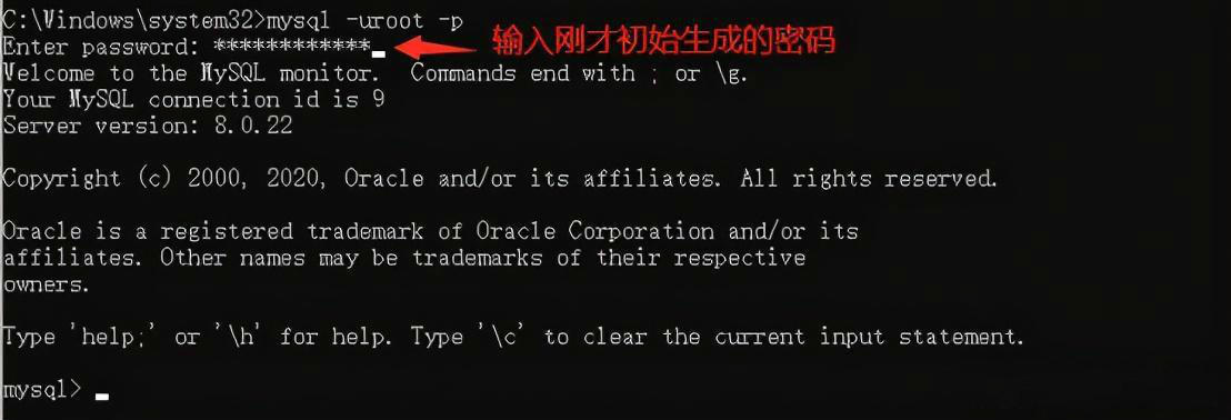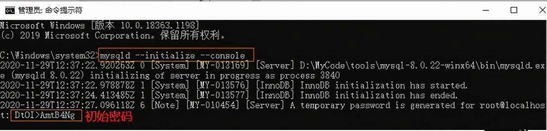 在控制台输入mysqld --initialize --console,成功了后面会有一个密码,先记住哦~