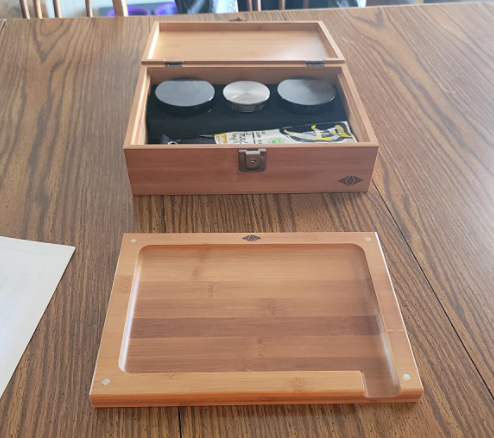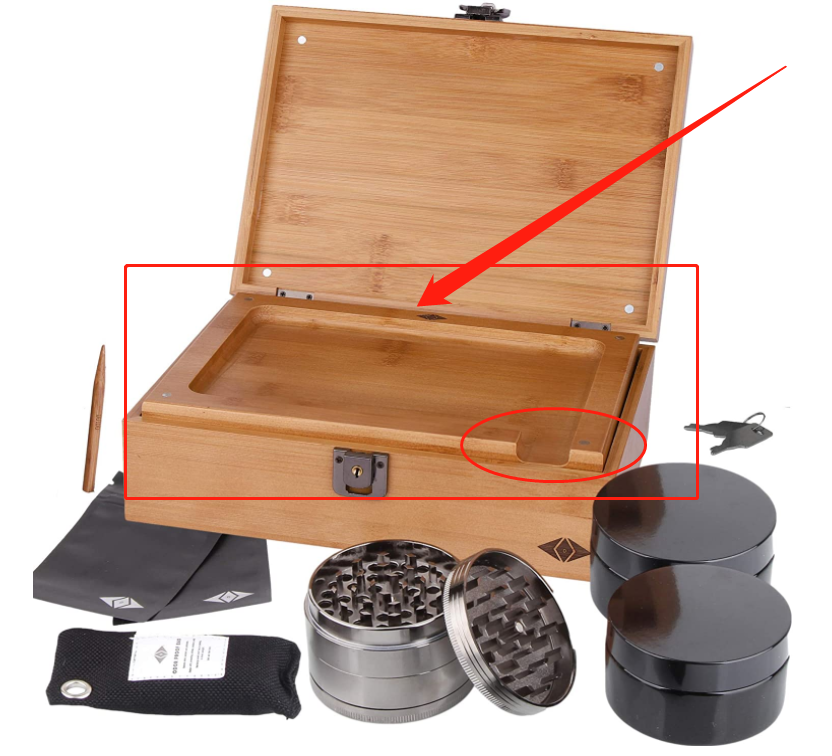 Duido 木制托盘是一款烟卷丝储蓄及研磨套盒里面的其中一个托盘组件。托盘一侧带有一个凹槽渠口,能够方便烟卷丝的残留清扫,设计十分人性化。