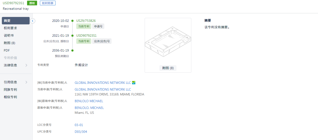 Rolling Tray 托盘的权利人是Global Innovation Network, LLC ,案件编号21-cv-2077。