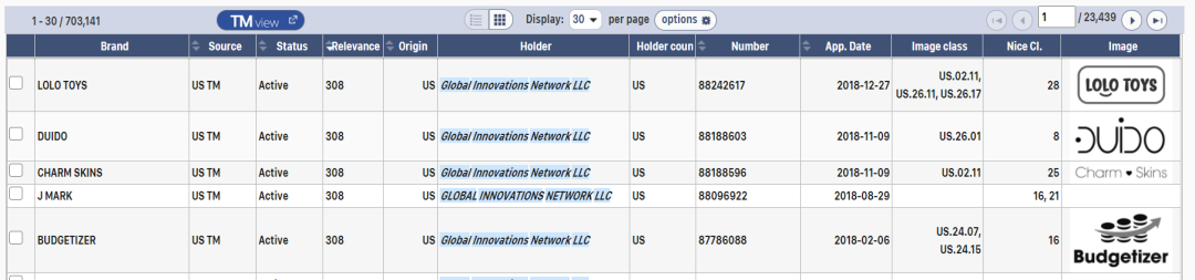 除了以上侵权外观专利之外,权利人还拥有以下美国商标注册: