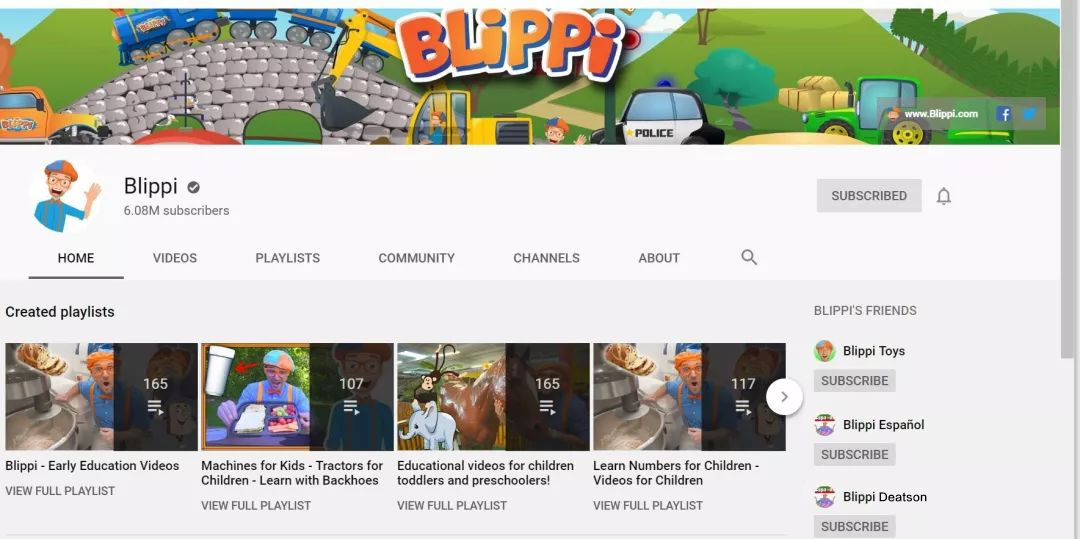 目前Blippi教育启蒙系列视频在全球总播放量超过10亿,超过139个国家的儿童都深爱有趣的Blippi叔叔。