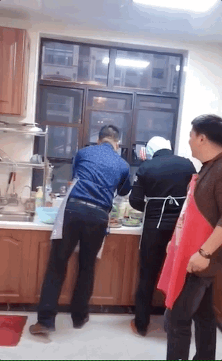 看到镜头,男同胞们开心地挥手,显然已经把做家务当成了一种自豪的事。