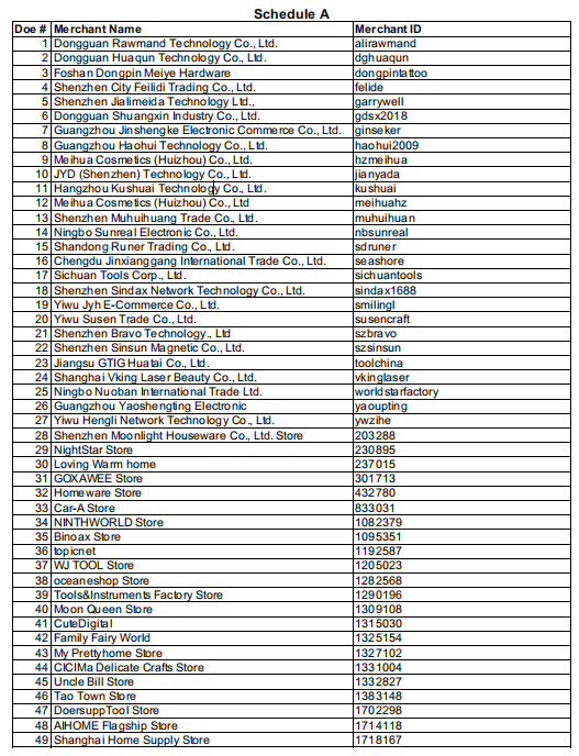被告名单:由于本案被告网店太多,为减少文章篇幅,本文只截取部分被告名单发表。电商朋友如果需要完整的被告名单核查,可通过文末的方式联系我们。
