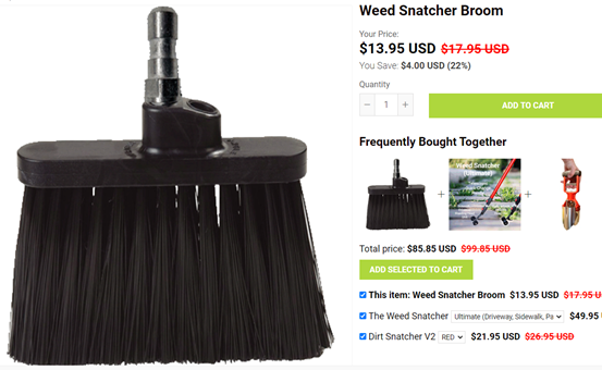 本案起诉的是涉及WEEDSNATCHER品牌的商标侵权行为。WEED SNATCHER是一款多功能杂草清理器,在除草后只需点击按钮,即可完成清理工作。产品图片如图所示: