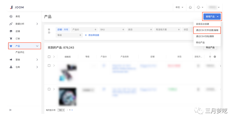点击管理产品、选通过CSV文件创建/编辑;