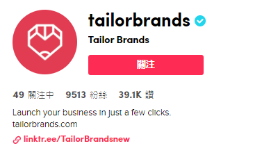 小嘎看到, Tailor Brands在今年的三月份着手布局TikTok账号,并加入TikTok的官方企业号,享受企业号的所有权益。简介处放置了Tailor Brands公司的官网,便于流量导入公司官网。