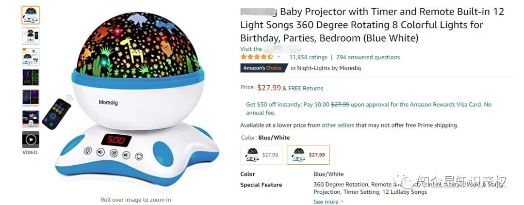 今天在浏览亚马逊的时候,看到一款星光灯,它是美国站的Amazon'sChoicein Night-Lights ,售价27.99美金,留评11862颗星。