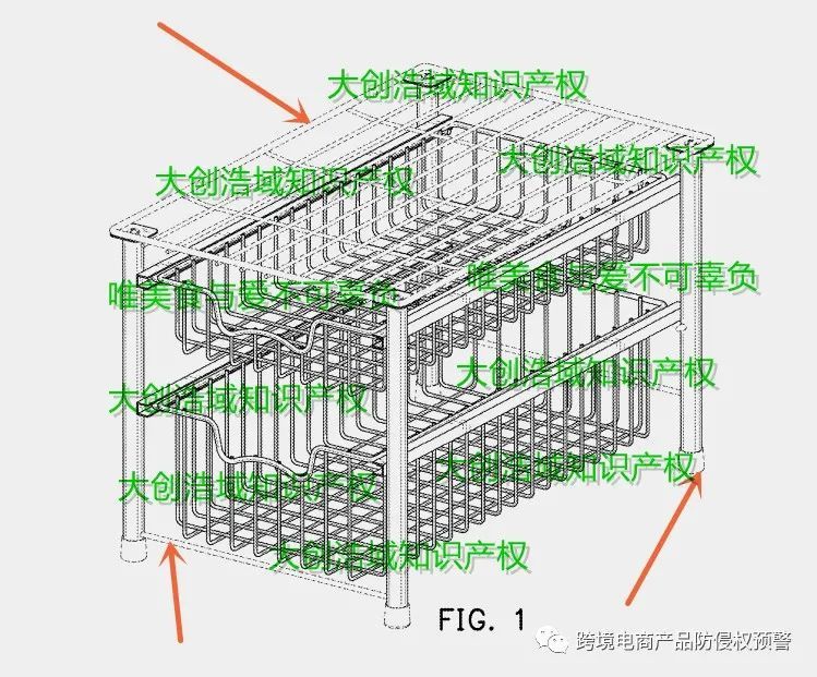 我看到下面这款【浴室用品收纳支架】目前仍然有多家企业正在售卖,如贵司也是做这款产品的,就能看到目前的销售数据了:(照片下载自亚马逊美国站,本次展示不用于商业用途,版权归原作者所有)在美国有专利,下面展示其专利图截图:注意,截图中标示了3个箭头,意思是指,主要该产品主体不变,在这3个位置进行小改动的,仍然构成专利侵权。不存在什么3个点不同,6个点不同,这种模糊的说法!往期好文推荐(点击跳转阅读):1