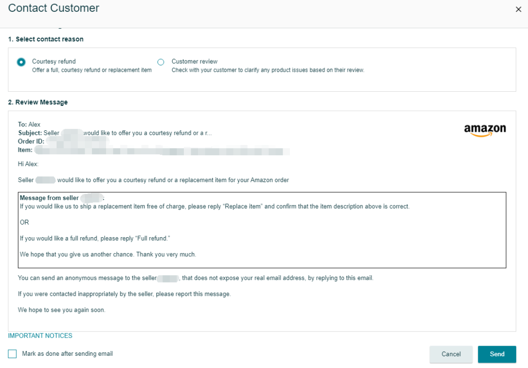 第2步,找到对应的差评内容,点击【Contact Customer】