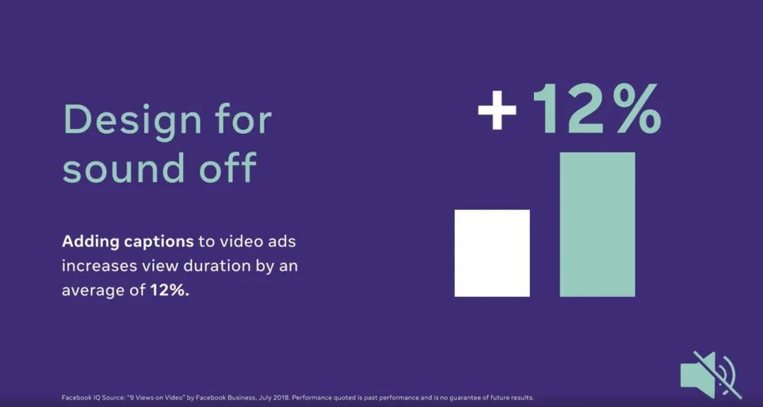 以"无声"作为设计标准,为影片广告加上文字说明,可使平均观看时间增加12%。