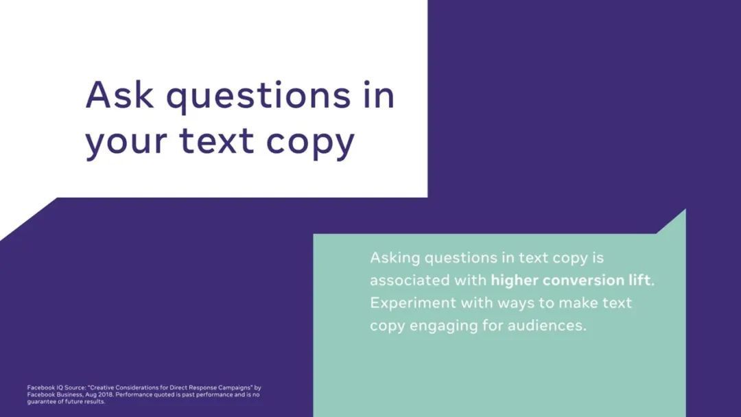在广告文案中向受众提问,可提高转化率。请尝试不同的风格,提高文案对受众的吸引力。
