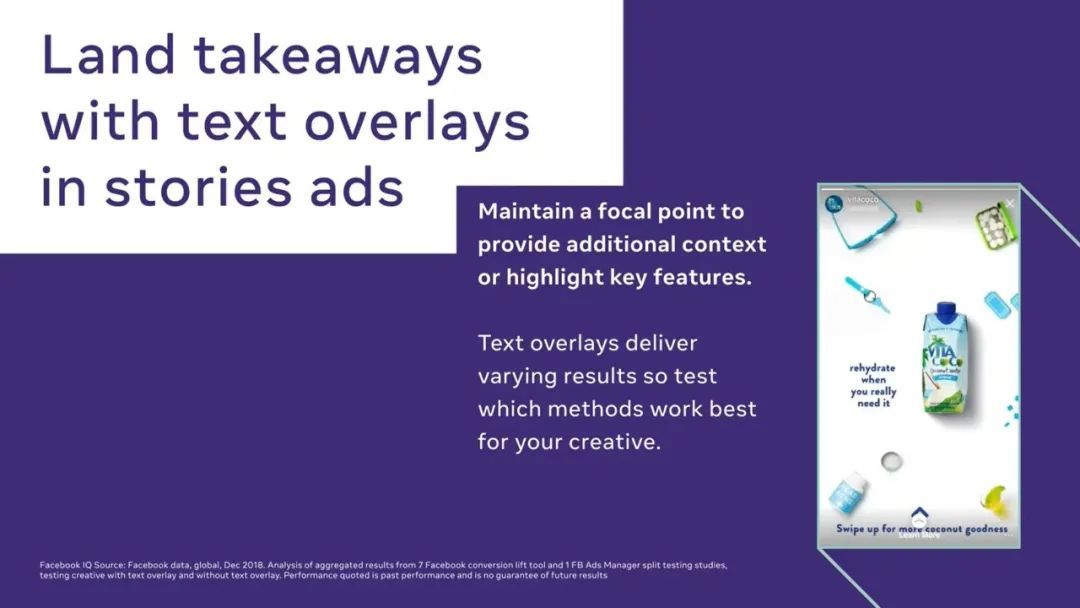 在限时动态广告中,维持单一视觉焦点,使用额外的背景或突出关键信息。不同的文字叠加会带来不同的成效,因此需要通过测试找到最适合自己的广告创意。