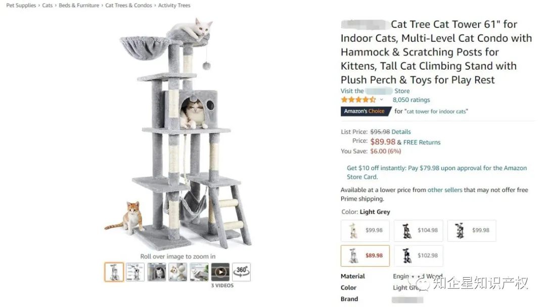 今天在浏览亚马逊的时候,就看到一款猫爬架,它是美亚站的Amazon'sChoicefor "cat tower for indoor cats" 售价89.98美金,留评8050颗星。
