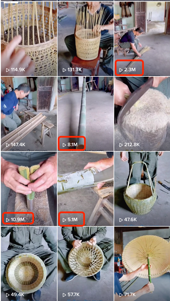 有TikTok账号定位是专门分享中国手工艺品内容的,它主要发布竹艺制品内容视频,几乎每几条就有一条百万量级播放,最厉害的已经有将近1100万播放量!