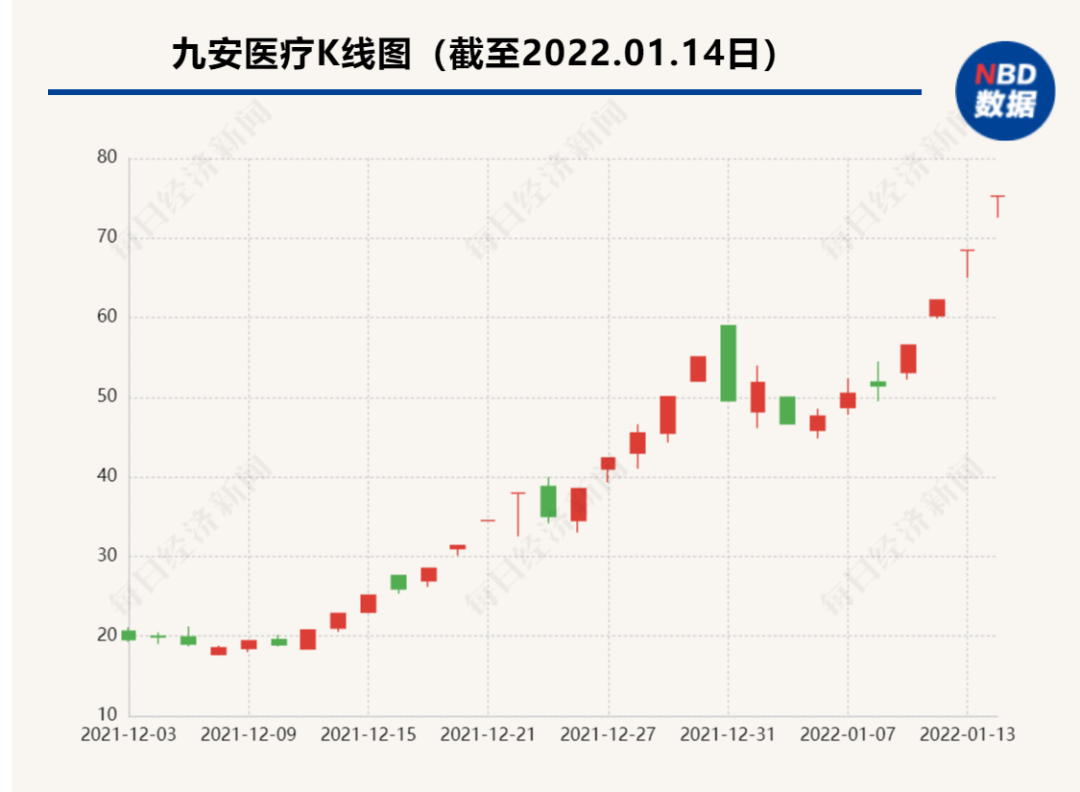 81亿元订单消息发酵后,九安医疗股价便开启飞涨模式。