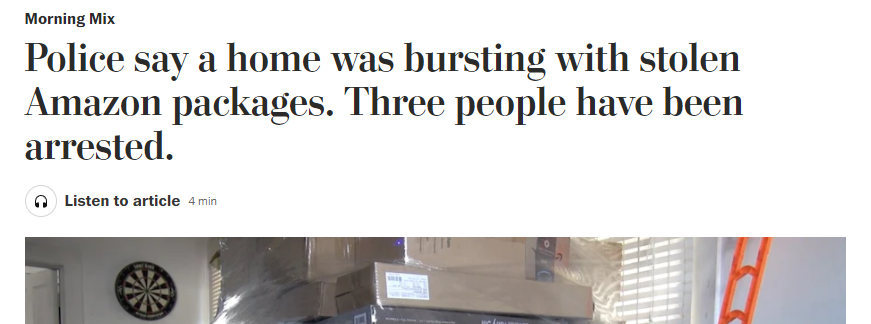 这两天美国当地警方查获了一起大案,几千件被盗的亚马逊货件被追回,情节还有点跌宕起伏。