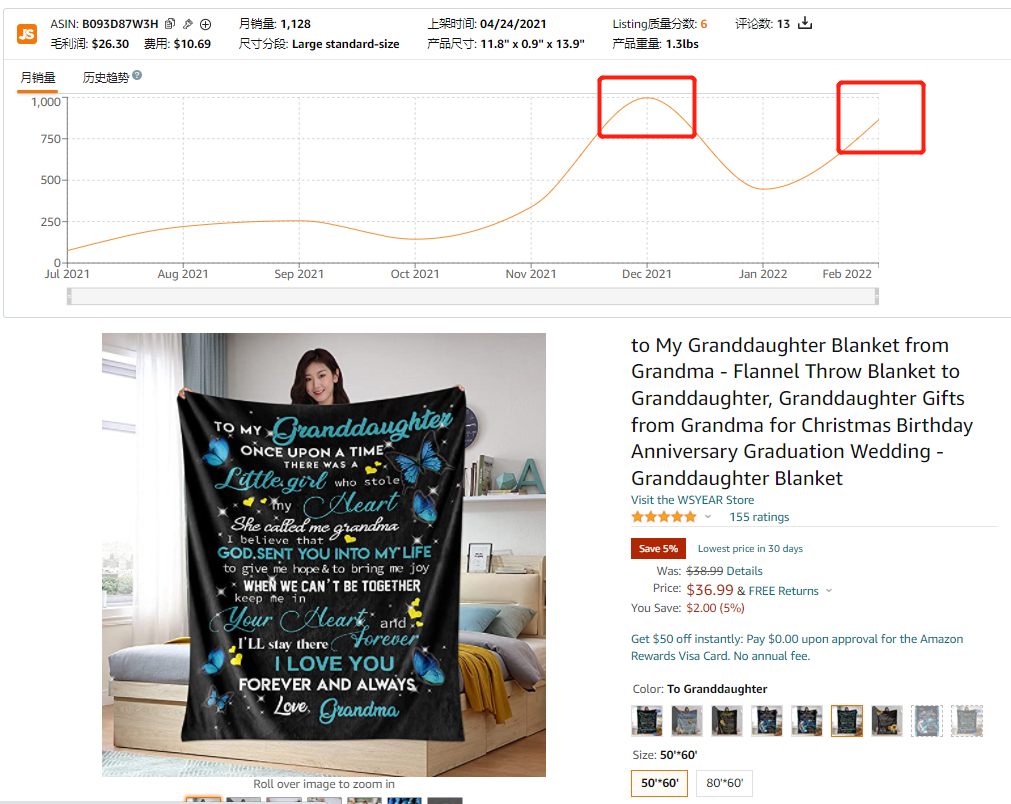 但我之所以留意这条毯子,是因为我通过爬虫数据发现:它们不仅适合做情人节礼物,它们几乎适合做所有节假日的"礼物"!