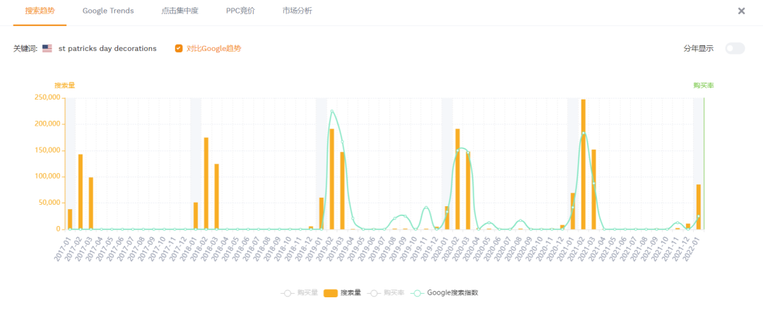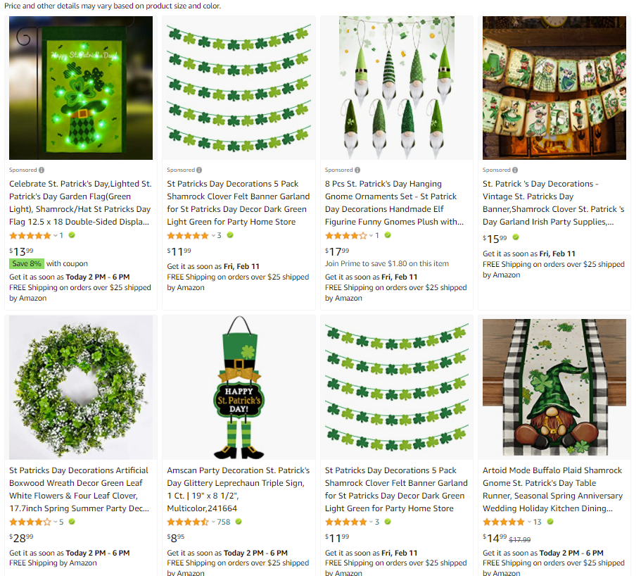 给大家介绍一个小众节日3月17日圣帕特里克节(St. Patrick's Day),关键词st patricks day decor在ABA的搜索热度已经超了情人节valentine decor.