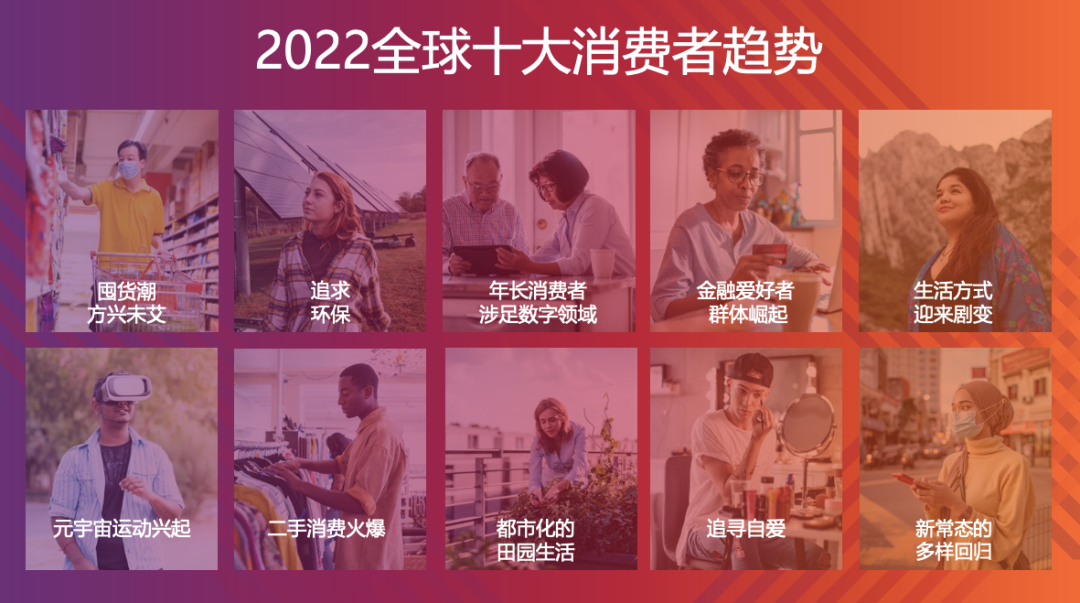 靠近和行动是 2022 全球十大消费者趋势背后的驱动力。2021 年,公众的恢复和适应能力受到极大考验,消费者不得不放弃掌控感,转而拥抱不确定性的局势。今年,消费者开始逐渐恢复主动权,能够根据自己的兴趣和价值观铺平未来的道路。