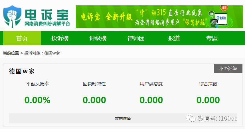 导读:近日,国内知名网络消费纠纷调解平台"电诉宝"(315.100EC.CN)接到用户投诉"德国w家"存在商品质量问题、不解决问题存霸王条款。