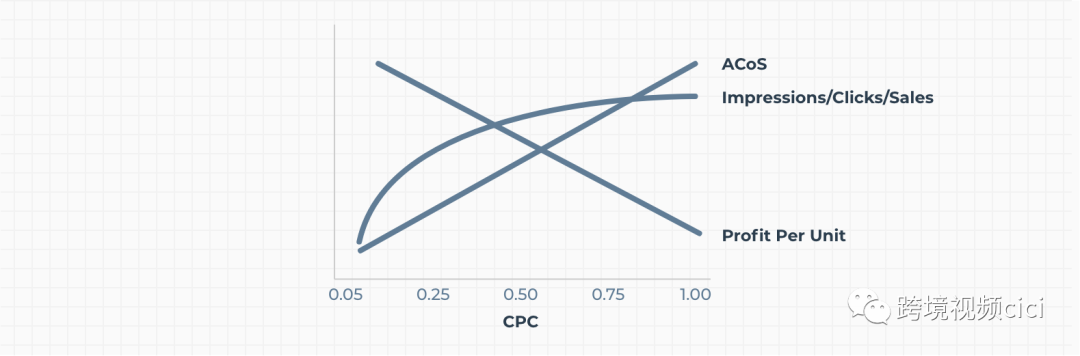 在许多情况下,如果您的出价和每次点击成本 (CPC) 较低,您的 Amazon ACoS 往往会较低,而单位利润往往会较高,因为您的单位成本较低。但是,低出价也会导致展示次数减少,从而导致点击次数和销售额减少。