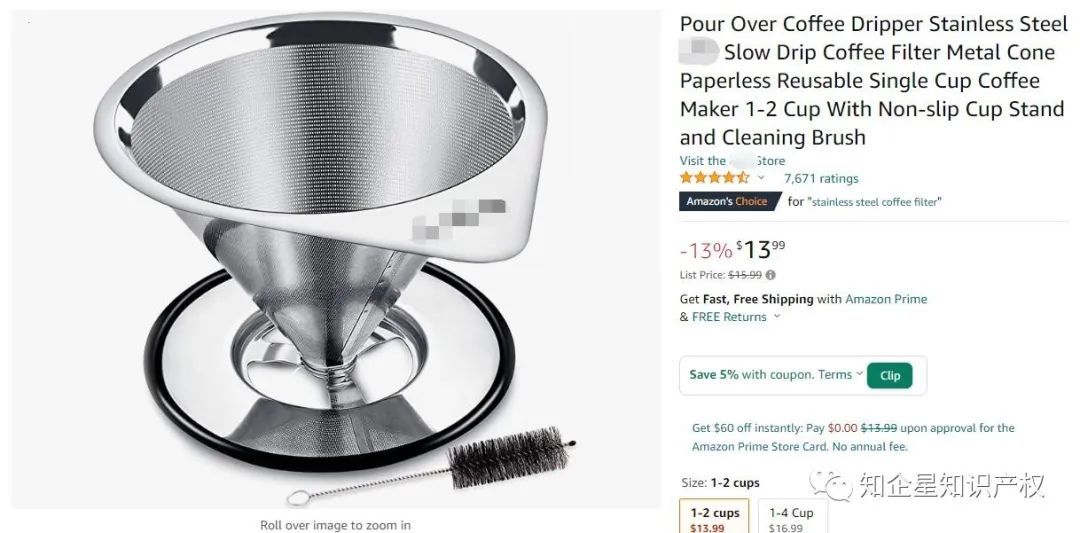 今天在浏览亚马逊的时候,就看到一款咖啡过滤器,它是美亚站的Amazon'sChoicefor "pour+over+coffee+filter",售价13.99美金,留评7671颗星。