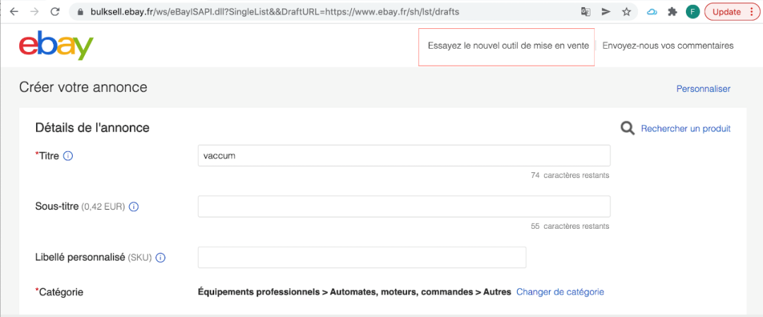 如果您使用的是classic listing tool,请选择右上角的"Try the new listing tool"。