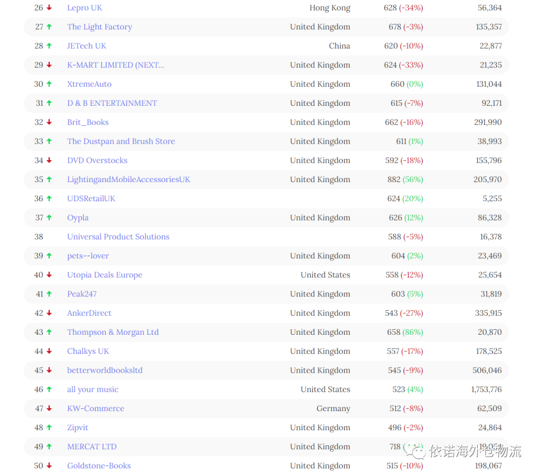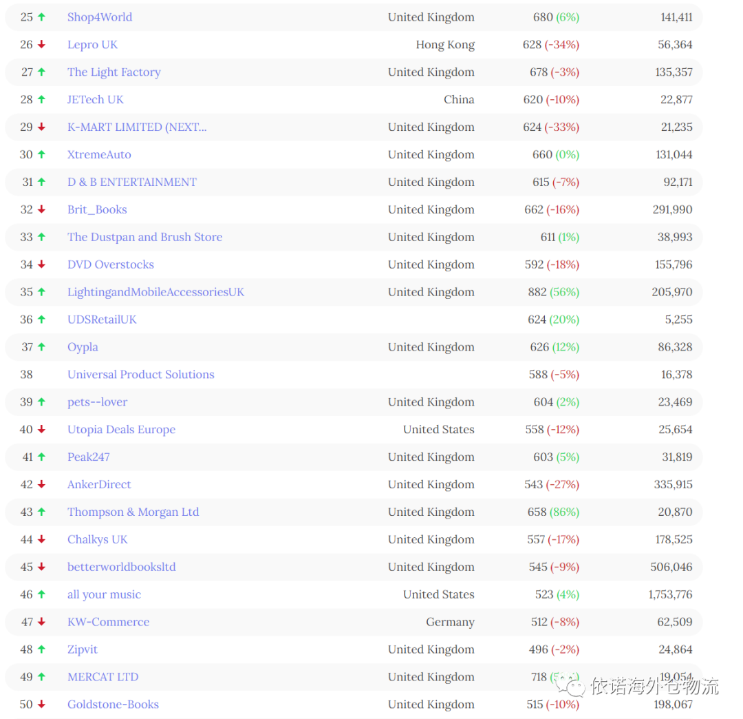 以上数据是英国亚马逊top50 名单,对该数据感兴趣小伙伴可以问业务员剩下的第51-100名单。