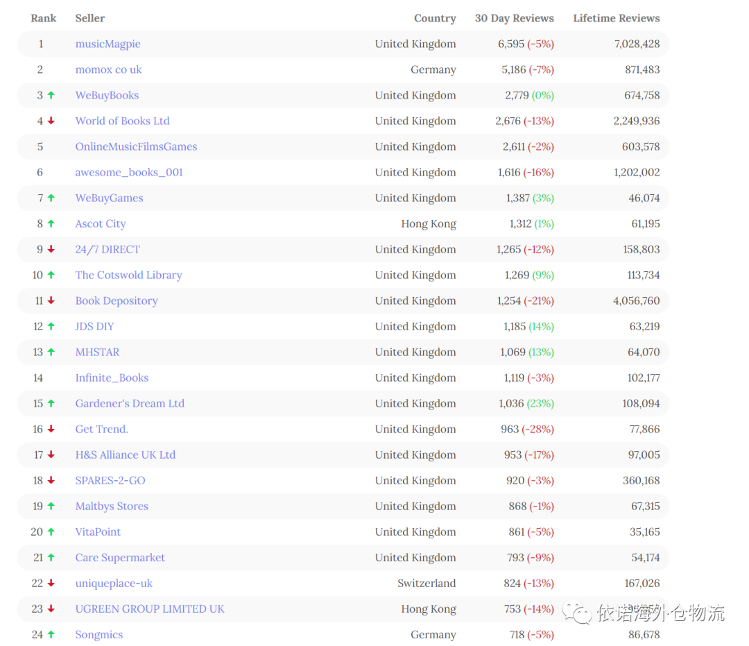 英国亚马逊TOP100卖家最新数据