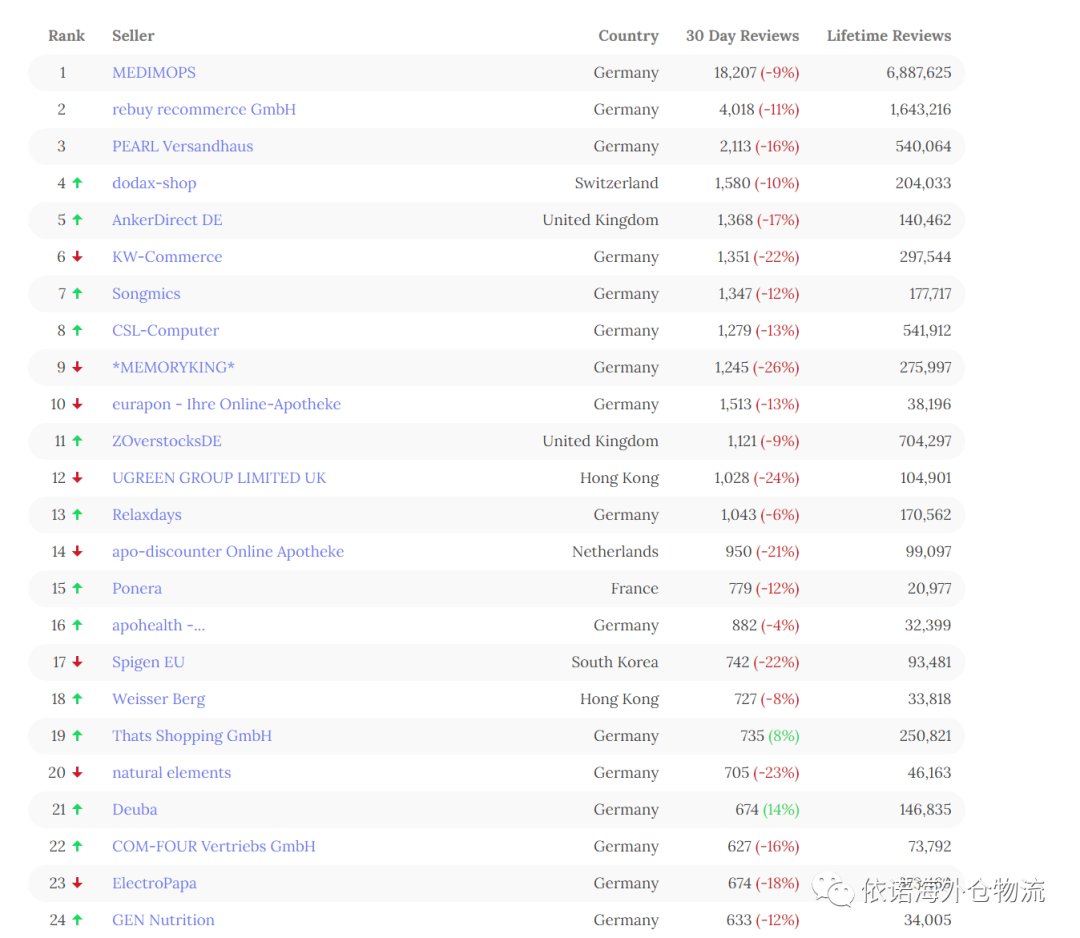德国亚马逊TOP100卖家最新数据