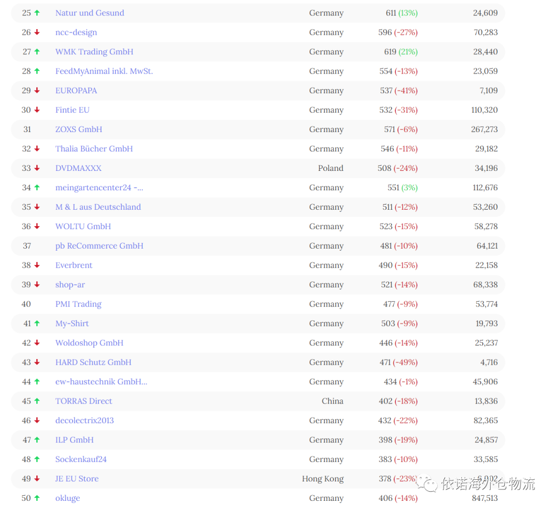 以上数据是德国top50 名单,对该数据感兴趣小伙伴可以问业务员剩下的第51-100名单。