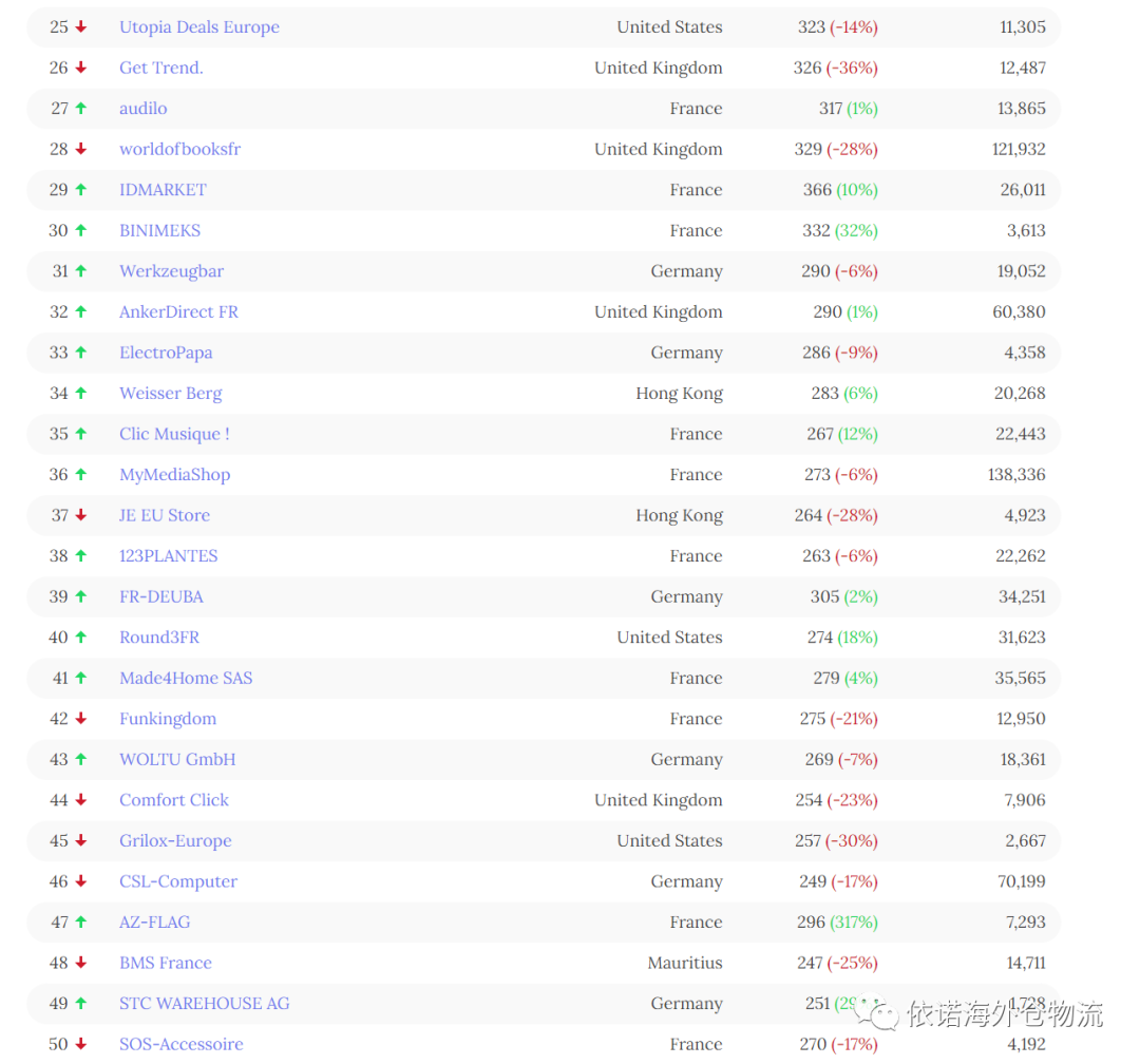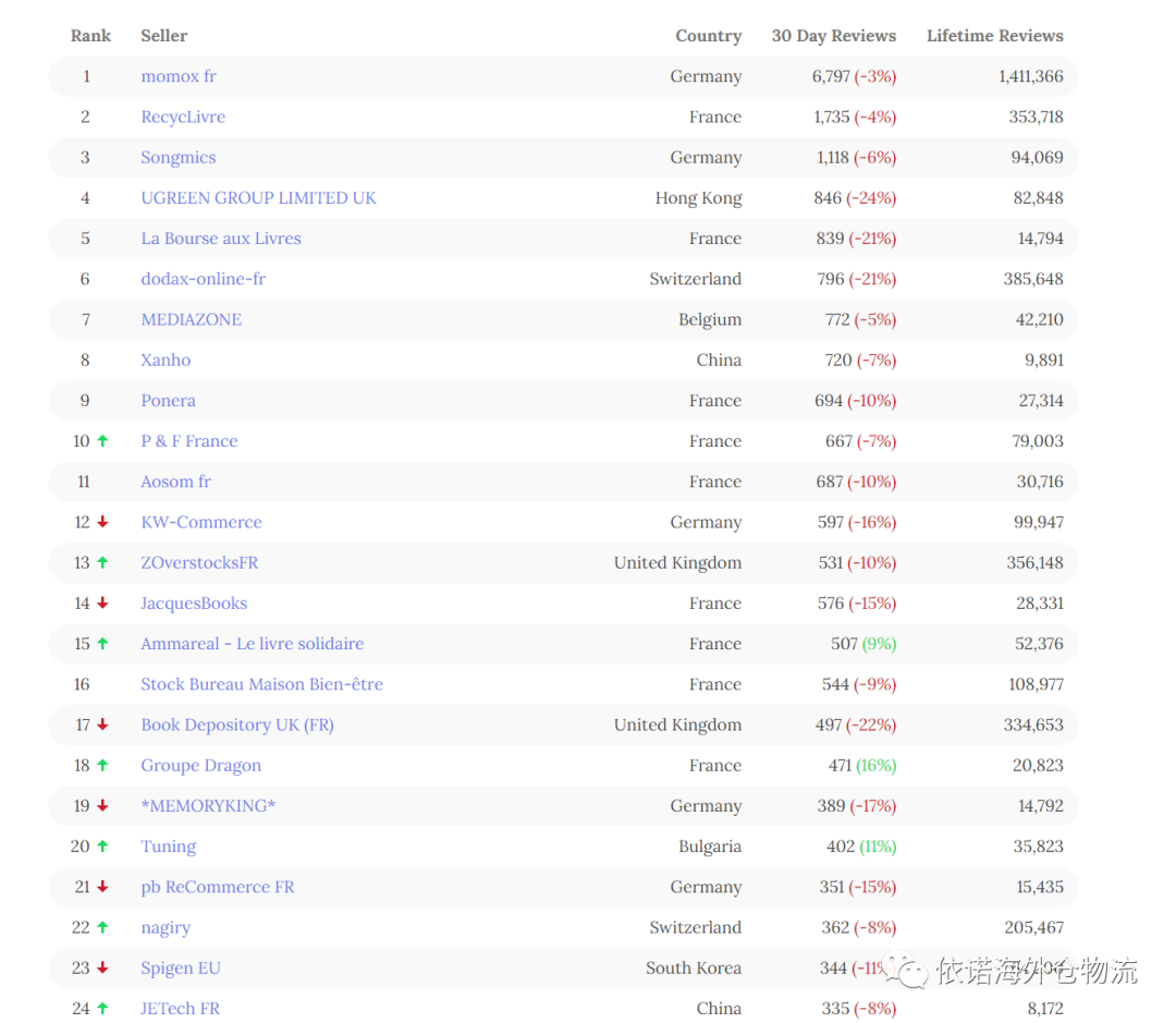 以上数据是法国亚马逊top50 名单,对该数据感兴趣小伙伴可以问业务员剩下的第51-100名单。