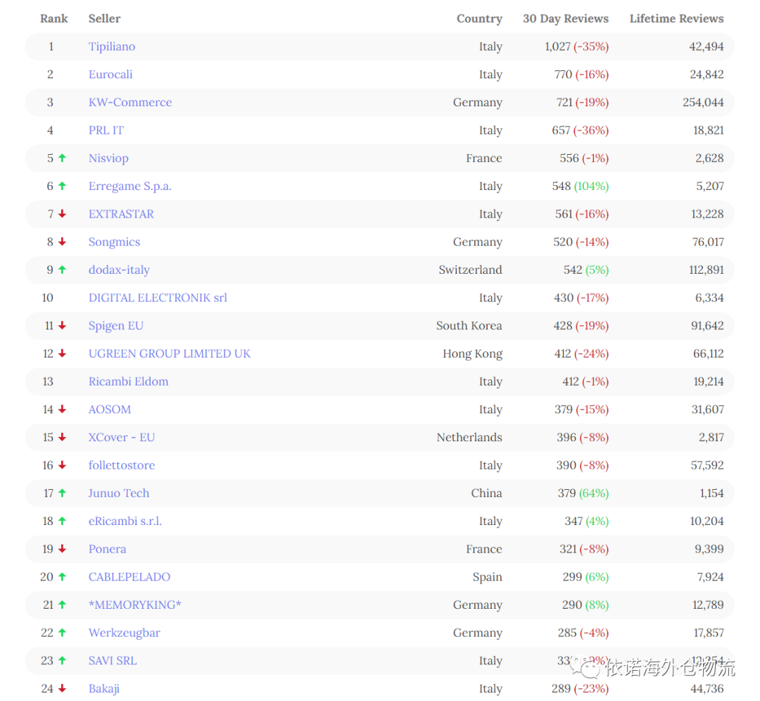 意大利亚马逊TOP100卖家最新数据