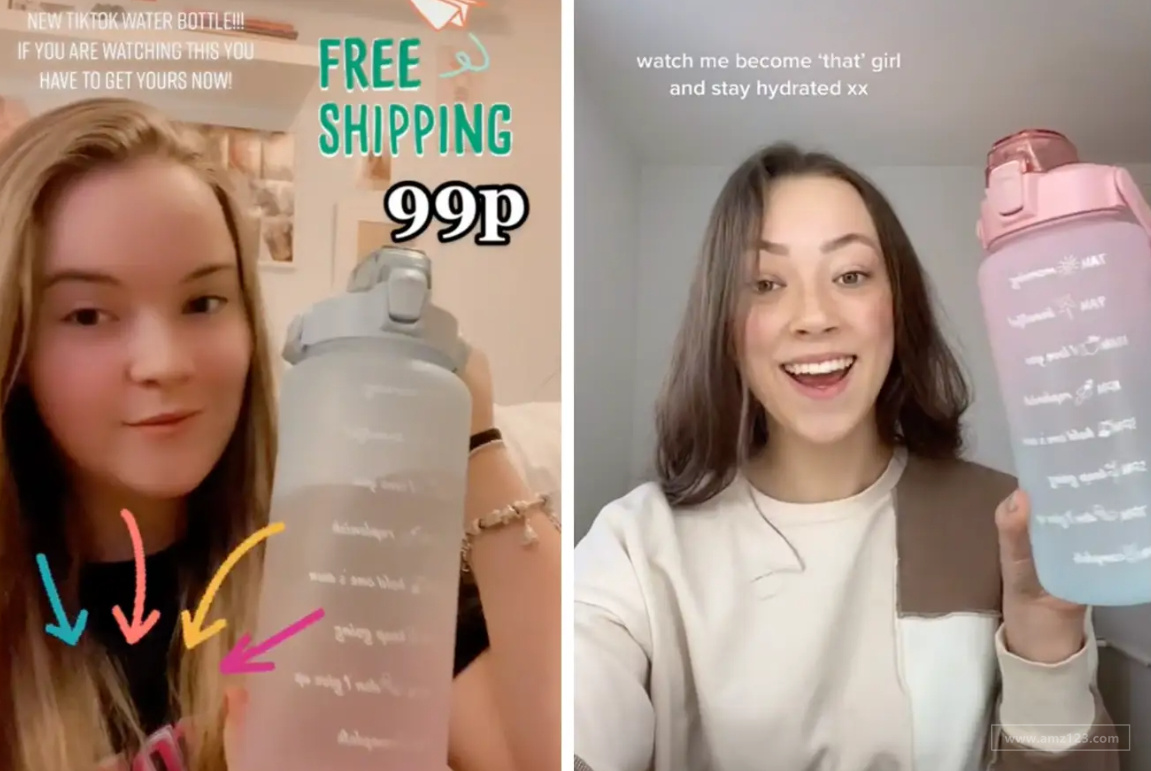 AMZ123获悉,过去几个月里不少英国的TikTok用户称经常刷到这款2升的彩虹水瓶。这款水瓶因鼓励多喝水的标语而成为卖点,除免邮费外,售价还低至0.99-1.29英镑。据悉,这类0.99英镑的好物在英国也大受欢迎,TikTok Shop上像0.99英镑的落日灯和0.99英镑的空气清新剂都斩获了大量意料不到的高订单量。