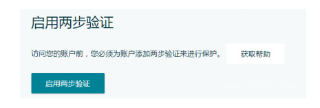 最后,还需要对注册的账户启用两步验证来进行保护,点击下图中的"启用两步验证"开始进行验证。注意:如果两步验证的页面无法打开,请清空浏览器的Cookie后刷新。还是打不开的话可更换浏览器尝试。