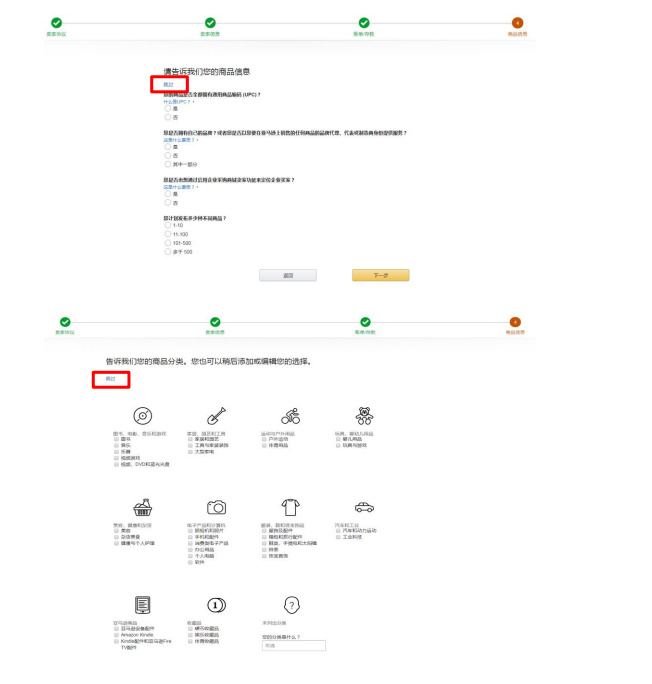这一步亚马逊会列举一些问题请您回答,借此了解卖家的产品性质和开始销售时计划的数量。基于这些信息,亚马逊可以向推荐适合的相关工具和信息。