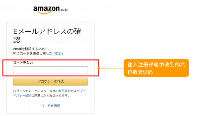 在邮箱中收取邮件。正常的话会收到一封来自亚马逊的邮件,里面有包含6位数字的验证码。在下面的画面中输入验证码,然后点击按钮进入下一步。