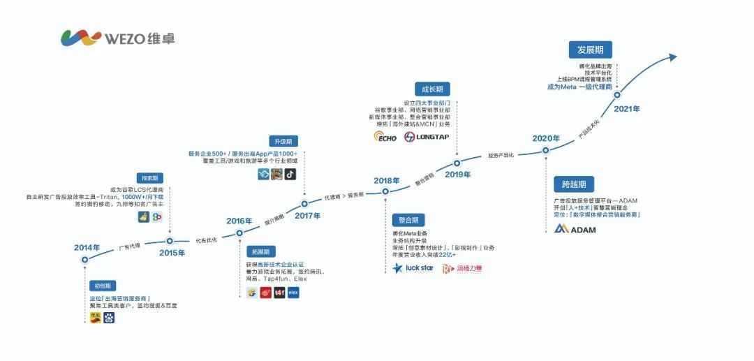 成立于2014年的维卓,最初仅服务于手机游戏和工具类客户,彼时出海移动营销逐渐形成规模化,平台广告、流量分发是广泛的市场推广手段。