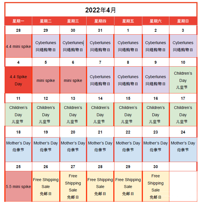四月活动日历