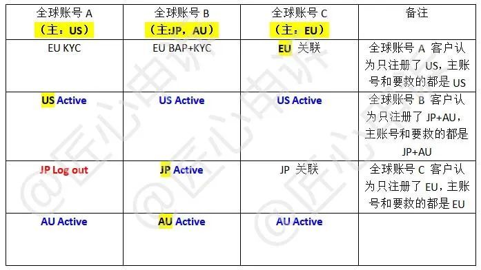 客户的诉求:激活"全球账号A"US +"全球账号B"JP和AU +"全球账号C"EU,解决关联问题,以及各站点存在的二审(BAP),KYC等问题。