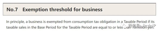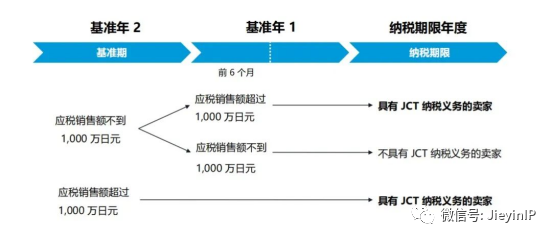 重点来了,卖家注册了JCT,是否就一定就有消费税纳税义务呢?答案是不一定!原则上,如果JCT纳税实体在纳税期限的基准期间(上图基准年2)的应税销售额等于或小于 1000 万日元,则在一个纳税期限内免除消费税义务。