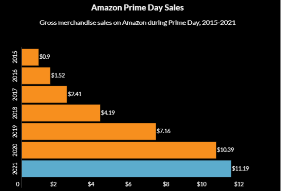 2021年Prime会员日的商品销量达到了惊人的112亿美元,