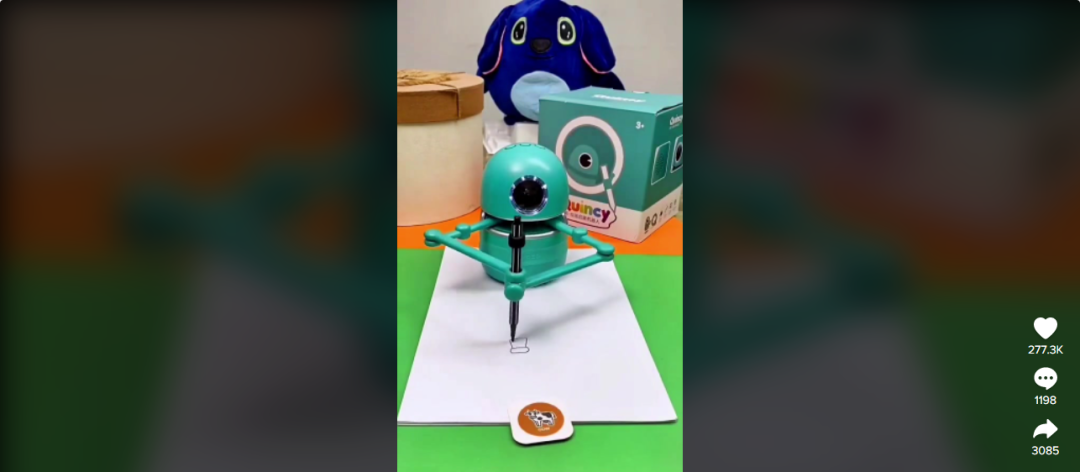 嘀嗒狗数据从TikTok上监测到了近期非常火爆的一款益智玩具——画画机器人,视频发布后持续有网友询问链接购买。想体验TikTok选品工具的小伙伴可以找我免费领取试用和交流:Victordidadog。