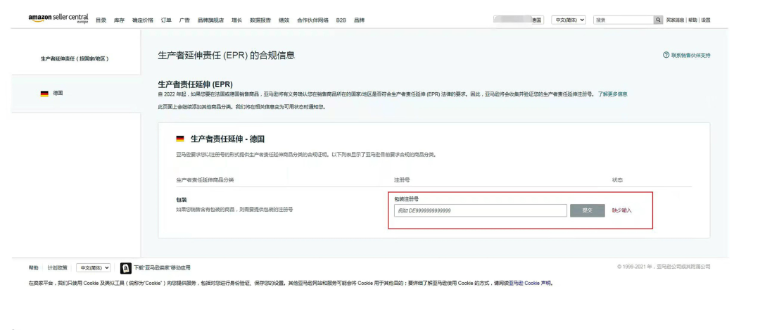 例如,亚马逊德国包装法上传链接https://sellercentral-europe.amazon.com/spx/mye/epr-compliance