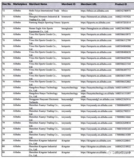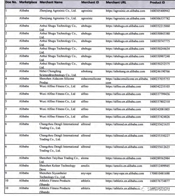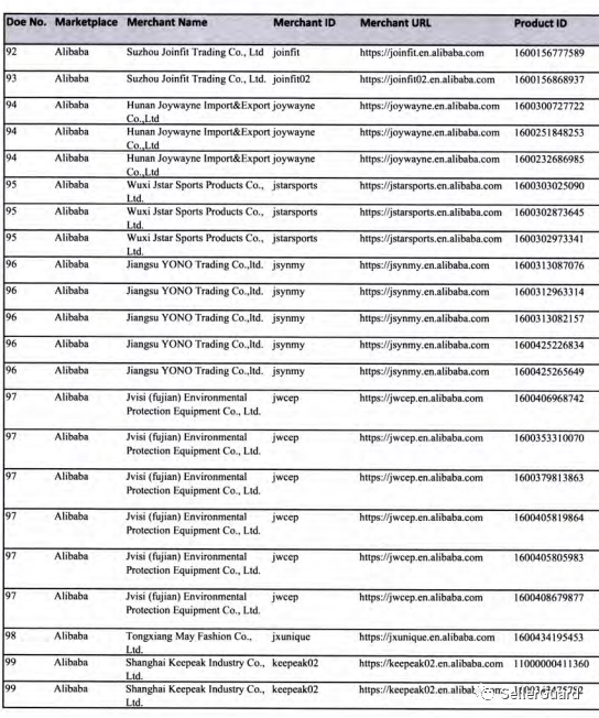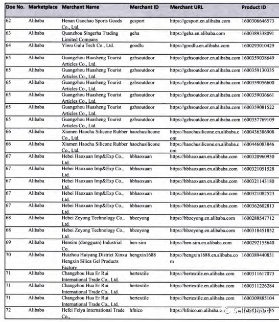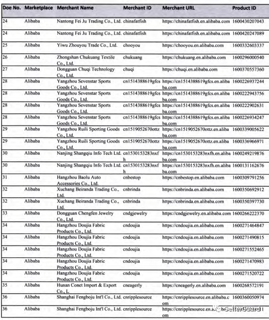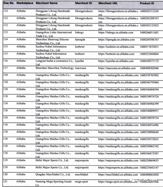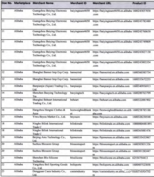 382家被告中,阿里巴巴国际站卖家占了半数之多,以下是国际站侵权刊登举例: