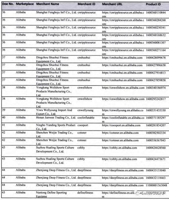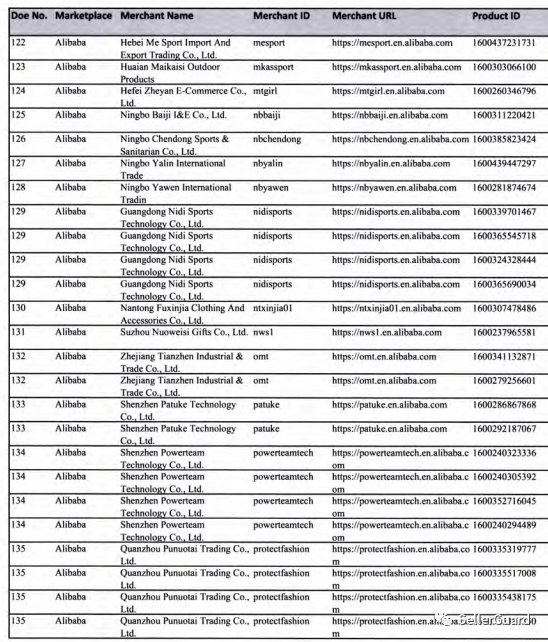 这是该案的被告名单,包含各跨境平台累计382家店铺: