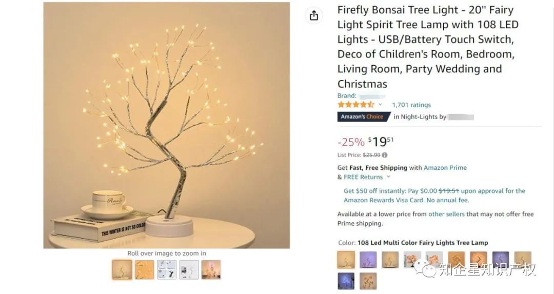 今天分享一款萤火虫盆景树灯,它是美亚站的Amazon'sChoice,售价19.51美金,留评1701颗星。