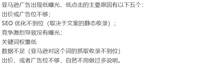 当然,低曝光、低点击的情况有很多种,其中不乏也存在着一些小的细分市场,比如某些关键词曝光量少,但精准度却很高的情况。所以,我们就要从广告数据的角度上去分析,有哪些因素是造成你低曝光、低点击的原因,避免广告打着打着越来越没有效果。