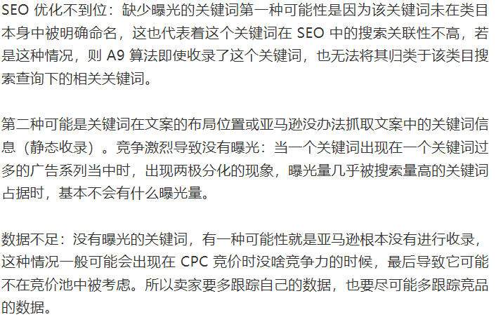 而这些低曝光、低点击的关键词对于卖家来说是极其不利的,不仅因为它们浪费钱,而当它们被 A9 算法收录时,对广告效果也是影响极大。