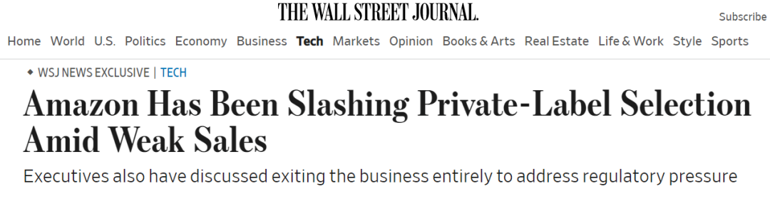 近日,《华尔街日报》发布报道称,由于销售疲软,亚马逊已开始大幅削减自有品牌销售的商品数量,并讨论了完全退出自有品牌业务以减轻监管压力的可能性。
